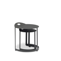 Mit dem ZWO Beistelltisch-Set zieht puristische Eleganz in Wohn- und Außenbereiche ein. Die runden Tische aus pulverbeschichtetem Aluminium überzeugen durch ihr klare Formsprache, ihr geringes Gewicht und eine wirklich smarte Detail-Lösung. Der integrierte Tragegriff in der Aluminium-Tischplatte ist nicht nur funktional, sondern auch gestalterisch raffiniert. Das Versetzen der Tische ist im wahrsten Sinne des Wortes ein „Handgriff“. Ob als Solitär oder Duo arrangiert – die Beistelltische lassen sich platzsparend untereinander schieben und passen sich jeder Wohnsituation flexibel an. Das halbrunde Untergestell sorgt für äußerste Standfestigkeit. Dank ihrer hochwertigen Verarbeitung sind sie sowohl Indoor als auch Outdoor vielseitig einsetzbar. Das ZWO Beistelltisch-Set ist im ausgewählten Fachhandel für 209 Euro (UVP) erhältlich.