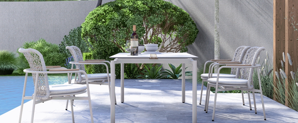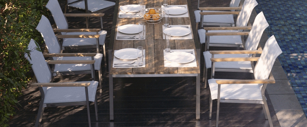 Design, Herstellung und Vertrieb von hochwertigen Outdoor-Möbeln aus Teak, Aluminium, Edelstahl und Marken-Kunststofffaser-Geflecht sowie Kunststoffgewebe.