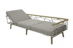 Gradlinigkeit ist eine Frage der Persönlichkeit. Die SOLENA Lounge vereint klare Linien mit einer dezent verspielten Note und unterstreicht den Sinn für außergewöhnliche Ästhetik. Der in light taupe pulverbeschichtete Edelstahlrahmen der Sitzelemente ruht auf nach außen gestellten Beinen aus massivem Teakholz. Arm- und Rückenlehnen sind kunstvoll gestaltet und werden von einer rund gedrechselten Teakholzleiste elegant eingefasst. Für hohen Sitzkomfort sorgen die großzügigen Rücken- und Sitzkissen. Beim 3-Sitzer-Element lassen sich die Sitzflächen beidseitig individuell verstellen und bieten so zusätzliche Flexibilität.