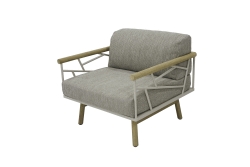Großzügig dimensioniert, ergonomisch und stilvoll: Der SOLENA Lounge Sessel verbindet klare Linien mit einer verspielten Note und einer umlaufenden Armlehne aus gedrechseltem Teakholz